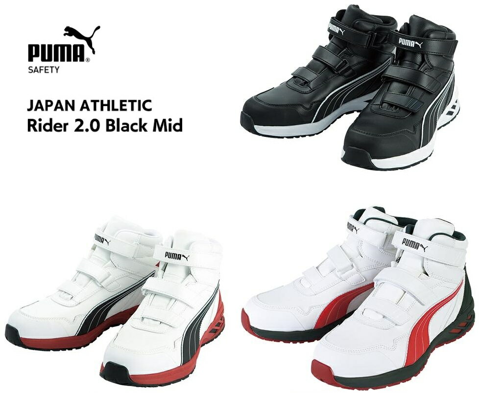PUMA プーマ ライダー2.0 安全靴 バイクシューズ ハイカット スニーカー 作業靴(63.352.0-63.353.0-63.356.0)マジックテープ JSAA規格 3Eワイド仕様 ライダーズブーツ