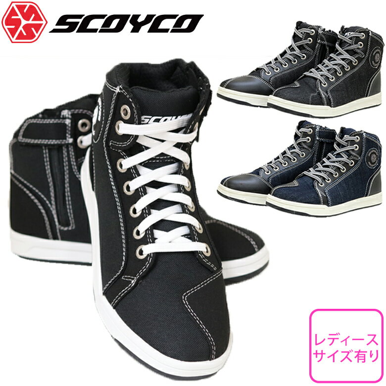 【在庫有り】レディースライディングシューズ バイク用 カジュアル デニム ブラック スニーカー ブーツ 靴 人気 軽い 男女兼用 SCOYCO(スコイコ) MT016-2
