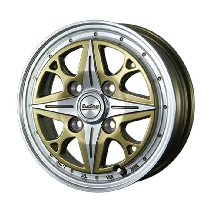 【商品名】 BeatStage FS-C 【カラー】 シャンパンゴールドポリッシュ 【ホイールサイズ】 12インチ 4B+40 4H-100 【タイヤ】 BRIDGESTONE SNEAKER SNK2 【タイヤサイズ】 155/70R12 73S◆◆◆ 注意事項 ◆◆◆ 車種 ・ 年式 ・ グレード によっては 装着できない場合やスペーサーを使用する場合がございます。 マッチングについてご不明な方はお気軽にお問い合わせください。 ◆ホイール : BeatStage FS-C ◆カラー : シャンパンゴールドポリッシュ ◆ホイールサイズ[インチ/リム幅/インセット/穴数/P.C.D.] ◇12インチ 4B+40 4H−100 ◆タイヤ : BRIDGESTONE SNEAKER SNK2 ◆タイヤサイズ : 155/70R12 73S タイヤ・ホイール 4本SET 組み込み、エアー充填、バランス調整済み※沖縄・離島は別途中継料が加算されます。