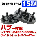 ハブ一体型 厚み15mm レクサス LS500 LS500H 50系 LS460 LS600H 40系 LS専用 PCD 120 5H ハブ径60mm M14 P1.5 ブラック ワイドトレッド スペーサー ハブ付 ハブリング ブラック 黒