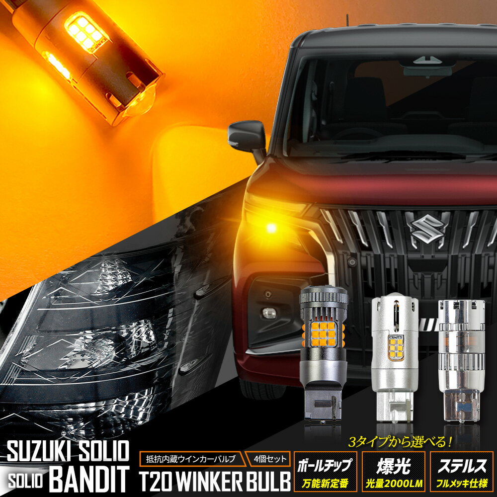 【本日20%OFF+5%OFF】【5と0の付く日】ソリオ・ソリオバンディット 適合 ウインカー 抵抗内蔵 4個/1set ボールチップバルブ 爆光2000LMバルブ ステルスバルブ ウィンカー ドレスアップ カスタム パーツ アクセサリー アンバー SUZUKI スズキ [1]