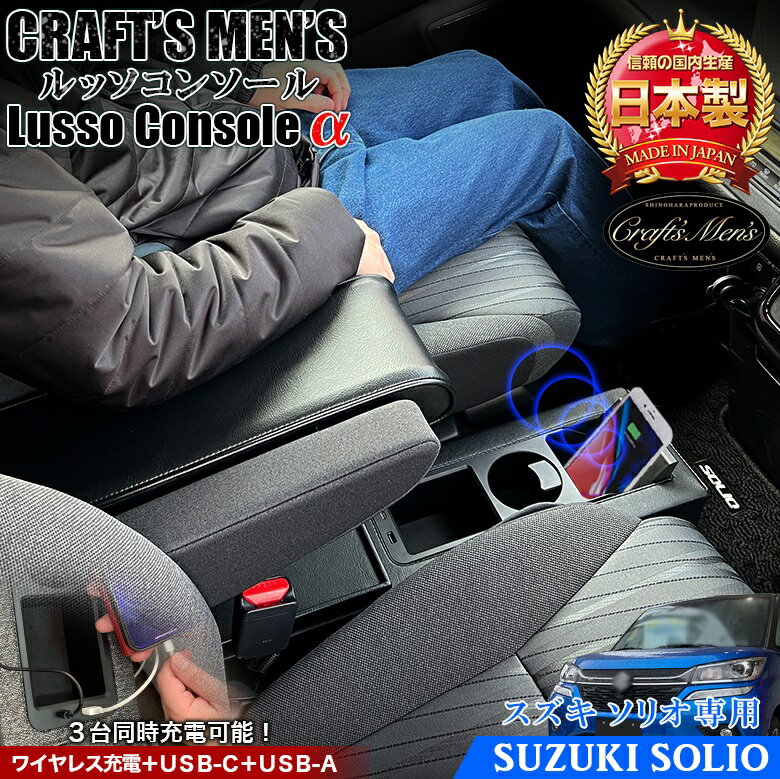 【11月30日限定!ポイント5倍】ソリオ Lusso α コンソールボックス CRAFTS MENS lusso | ソリオアームレスト アームレスト コンソール スマホホルダー ドリンクホルダー usb 充電 TYPEc 新型ソリオ コンソールボックス 新型ソリオアー