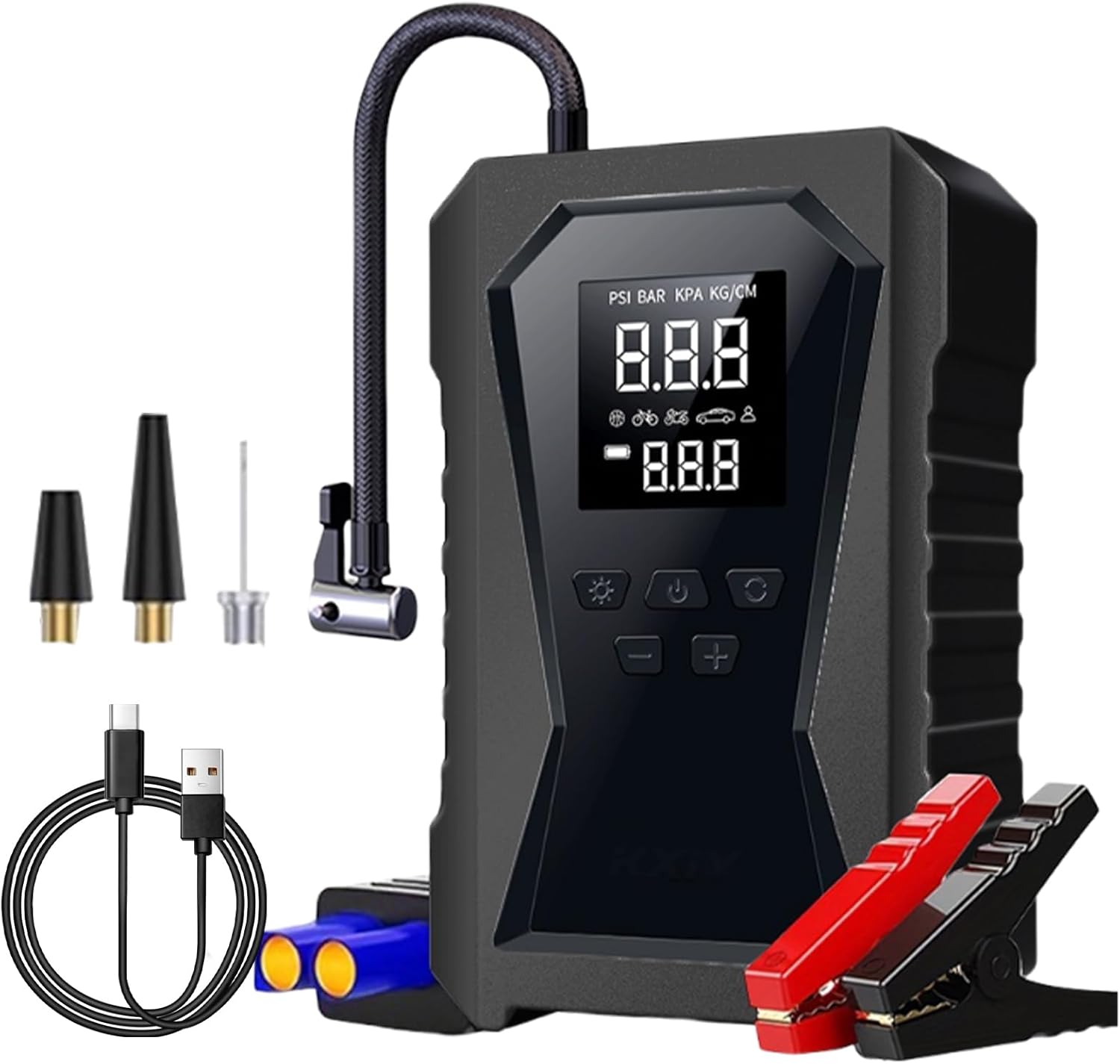 商品仕様 商品仕様 【頼れるマルチカーソリューション】高エネルギーバッテリーコアを搭載し、インターフェース互換性と過負荷保護を提供しながら、様々な車両に信頼性の高い電源供給を提供し、ユーザーの安全性とデバイスの効率を向上させます。 【2イン1デザイン】ジャンプスターターとエアコンプレッサーの2イン1統合により、機器の重複を最小限に抑え、さまざまな状況に適応し、旅行中の携帯性を高めます。 【簡単な携帯性】ワイヤレス携帯用に設計されたコンパクトなデザインで、省スペースの利便性を最大化し、12Vシステムをサポートし、滑り止め構造により使用中の安定性を向上させます。 インテリジェント安全設計:自動検出はスマートクランプシステムと連動して安全プロトコルを起動し、高速接続を可能にし、逆極性エラーから効果的に保護します。 最適化された膨張プロセス:自動キャリブレーション技術、クリアなデジタル表示を組み込み、精度を高めるために調整可能なプリセット圧力設定でマルチモード膨張をサポートします。 このスマートジャンプスターターとエアコンプレッサーのコンボで、シームレスな車両サポートを体験してください。 車、オートバイ、トラック、船舶用に設計されており、コードレスで充電可能なデザインで、デジタルディスプレイを備えています。 キャンプ、旅行、アウトドアアドベンチャーに最適で、モバイルバッテリーとしても機能し、ロードトリップやワークショップの作業に欠かせないアイテムです。 材質:ABS 製品サイズ:裸のサイズ約18.5x11.5x6cm/7.28x4.53x2.36インチ、エアチューブの長さ36cm/14.17インチ。 重量:正味重量679g、総重量約1050 パッケージサイズ:約25x22x8cm/9.84x8.66x3.15インチ。 実バッテリー容量:2000mAhバッテリー4個、総容量8000mAh。 充電タイプ:USB 照明モード:白色ライトは常に点灯、赤と青の点滅、赤色のチューブ点滅。 空気注入モードと圧力:車、バスケットボール、バイク、オートバイの空気注入(空気圧0.6~4.6BAR調整可能)。 適用環境:-40度-60度、12V車、12Vの新エネルギー、オートバイ、および排気量6.0未満のすべての12Vモデルの始動を支援するために使用できます。 シリンダー数:22気筒、大きなシリンダー直径で高速膨張を実現(シリンダーが大きいほど、空気注入が速くなります)。 パッキング・リスト:: エアコンプレッサー付きジャンプスターター x 1セット(本体 x 1、英語取扱説明書 x 1、USB充電ケーブル x 1、スマートワニ口クリップ x 1個、36cm インフレータブルチューブ x 1個、バスケットボールエアノズル x 1個、カヤックエアノズル x 1)。 ご注意: 照明や画面設定の違いにより、商品の色が写真と若干異なる場合があります。