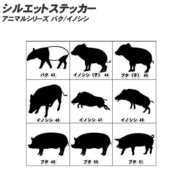 シルエットステッカー 10cm〜80cmまで選べるサイズ!アニマルシリーズ 車 車用 カー用品 動物 バク ばく イノシシ いのしし 猪 ブタ 豚 ピッグ カバ かば サイ さい クマ 熊 ベアー シロクマ オリジナル オーダー スーツケース キズ消し 補修 バイク ヘルメット 目印