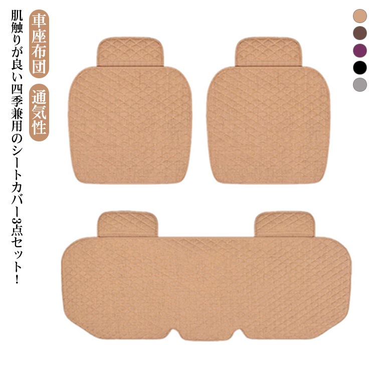 肌触りが良い四季兼用のシートカバー3点セット!●シンプルなデザイン、簡単に装着できる、裏面滑り止め加工でズレを防止できる。●防水で汚れなどの心配はなく、シートクッションで座席を保護し、ドライブを楽しめる。●運転席などに敷いて使う、クッションです。気持ちのいい座り心地です。 サイズ3点セットサイズについての説明◎サイズ:前座席50*47cm 後座席:50*長さ130cm ◎適用季節:四季兼用 ◎スタイル:シンプル ※サイズ表の実寸法は商品によって1-3cm程度の誤差がある場合がございます。素材亜麻色ベージュ コーヒー パープル ブラック グレー備考 ●サイズ詳細等の測り方はスタッフ間で統一、徹底はしておりますが、実寸は商品によって若干の誤差(1cm〜3cm )がある場合がございますので、予めご了承ください。●製造ロットにより、細部形状の違いや、同色でも色味に多少の誤差が生じます。●パッケージは改良のため予告なく仕様を変更する場合があります。▼商品の色は、撮影時の光や、お客様のモニターの色具合などにより、実際の商品と異なる場合がございます。あらかじめ、ご了承ください。▼生地の特性上、やや匂いが強く感じられるものもございます。数日のご使用や陰干しなどで気になる匂いはほとんど感じられなくなります。▼同じ商品でも生産時期により形やサイズ、カラーに多少の誤差が生じる場合もございます。▼他店舗でも在庫を共有して販売をしている為、受注後欠品となる場合もございます。予め、ご了承お願い申し上げます。▼出荷前に全て検品を行っておりますが、万が一商品に不具合があった場合は、お問い合わせフォームまたはメールよりご連絡頂けます様お願い申し上げます。速やかに対応致しますのでご安心ください。