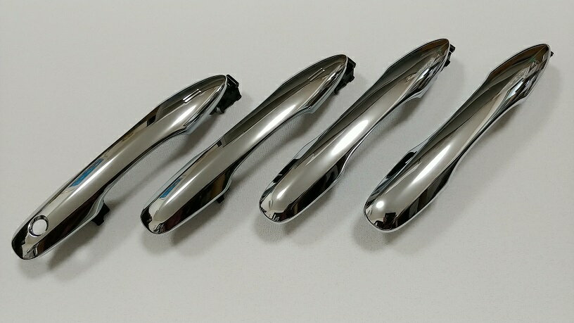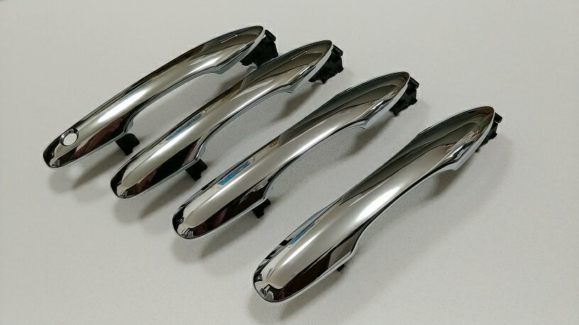 10系、アクア用の交換式メッキドアハンドル。 光り輝くメッキのスパイス。 サイドビューの印象の核となるアイテム。 貼付のメッキカバーとは違い、交換式なのでメーカー付けのような綺麗な仕上がりです。 トヨタ純正なので安心の耐久性と品質、メッキ製品は純正に限ります。 ※運転席・助手席はスマートキー対応タッチセンサーグリップです。 (元のハンドルがスマートキー対応仕様の場合、機能を損なうことなく使用できます。) ※スマートキー無し用も別に出展しております。 4ドア1台分セットの価格です。 取付要領書をお付けします。 (コピーとなります。他車用ですが装着の基本は同じなので参考にしてください。)