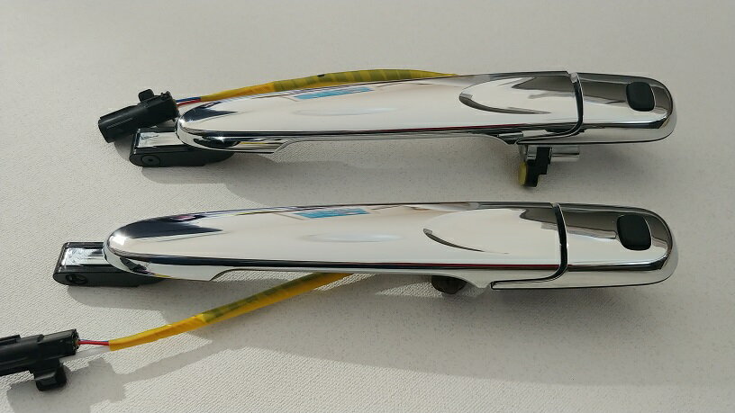ハリアー30、31、35、36系に適合のメッキドアハンドル。 ノーマルのボディー同色等のハンドルとはかなり違った豪華な雰囲気になります。 貼り付け式のメッキカバーとは違い、交換式なので握った時の違和感もなく仕上がりは最高。 トヨタ純正部品なので社外品のメッキ製品にはない高品質。 取付要領書付(流用部品につき類似車型用のコピーとなります)※運転席のキーホールレスも選べます。(キーシリンダーを外す等の加工が必要ですが弊社ではサポートしておりません。フルキーホールレス仕様にする場合はバッテリーあがり時の際などにはキーレスが効かないのでご注意ください)