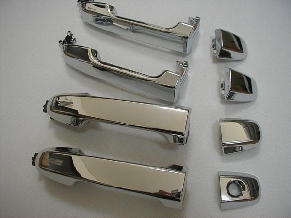 ヴォクシー60、65系・70、75系に適合のメッキドアハンドル。(スマートキーには対応しておりません) ノーマルのボディー同色等のハンドルとはかなり違った豪華な雰囲気になります。 貼り付け式のメッキカバーとは違い、交換式なので握った時の違和感もなく仕上がりは最高。 トヨタ純正部品なので社外品のメッキ製品にはない高品質。 取付要領書付(流用部品につき類似車型用のコピーとなります)※運転席・助手席のキーホールレスも選べます。(キーシリンダーを外す等の加工が必要ですが弊社ではサポートしておりません。フルキーホールレス仕様にする場合はバッテリーあがり時の際などにはキーレスが効かないのでご注意ください)
