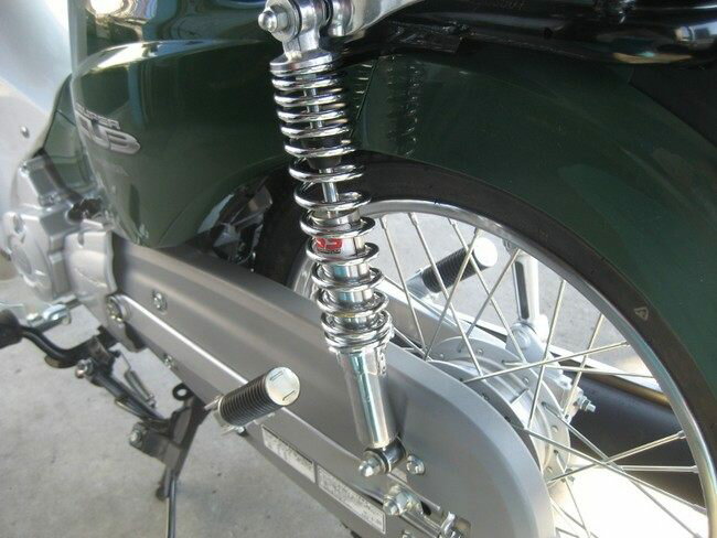 ■商品概要スプリングカラー:メッキボディカラー:メッキ長さ:330mmピンスパナ付2本1セット5段階調整可■注意点※スーパーカブ110PRO(JA07)には取り付けできません。※JA07PRO・JA10・JA44・JA59・JA42不可。■適合車種スーパーカブ110 スーパーカブ110 備考: (JA07)