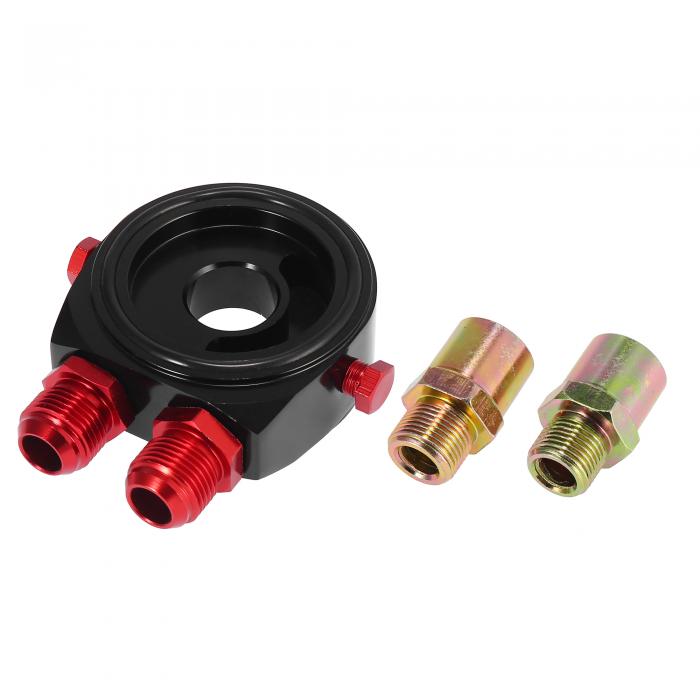 X AUTOHAUX オイルブロック サンドイッチ 3 / 4-16 UNF M20x1.5 油温油圧メーターセンサー ユニバーサル カー用 アルミニウム合金 ブラック レッド