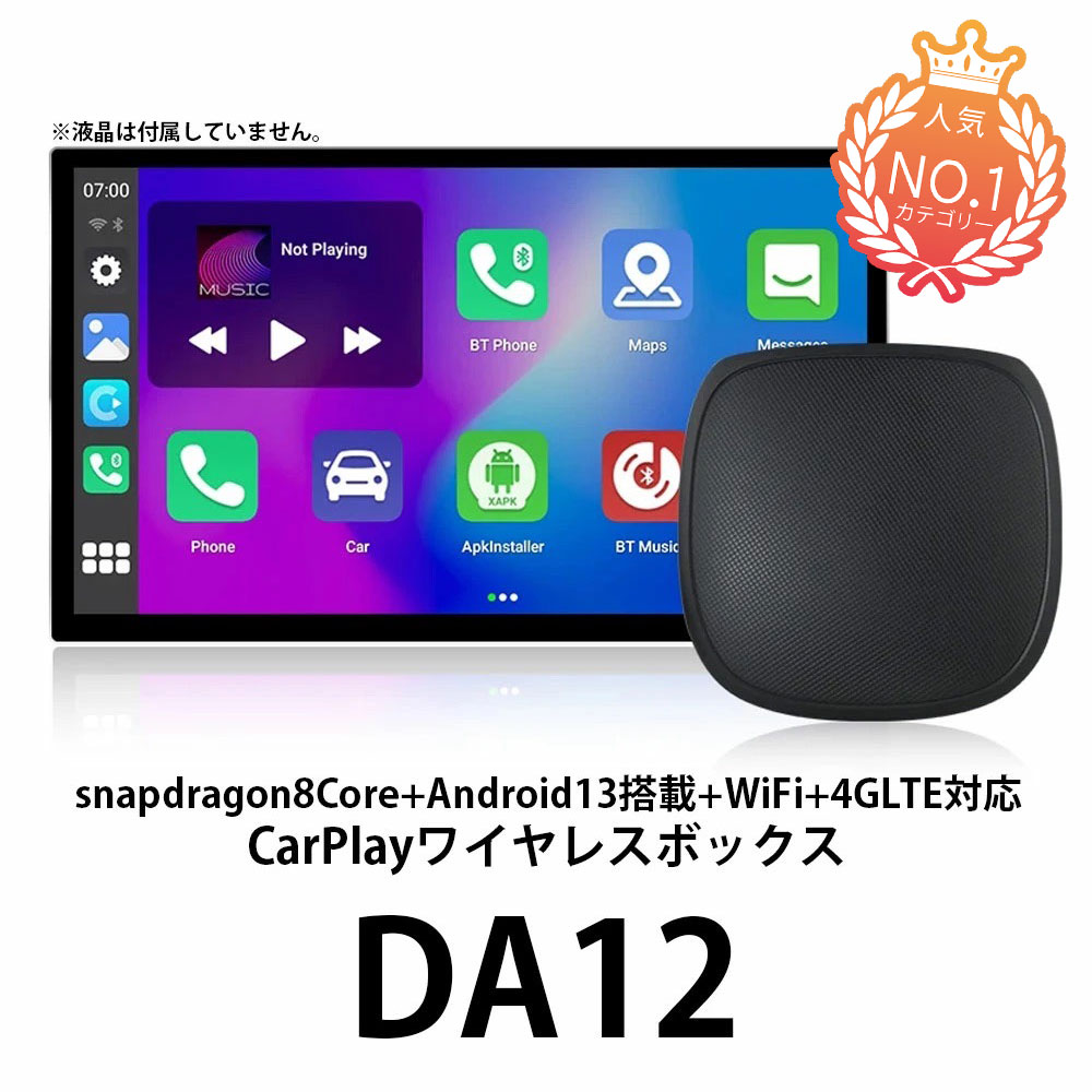 【新品 即納 型番 DA12】Android13搭載 Apple CarPlay Android Auto 対応 マルチメディアビデオボックス メモリ4GB ストレージ64GB CarPlay iPhone アンドロイド Youtube Netflix 対応 snapdragon 8コア Android BOX