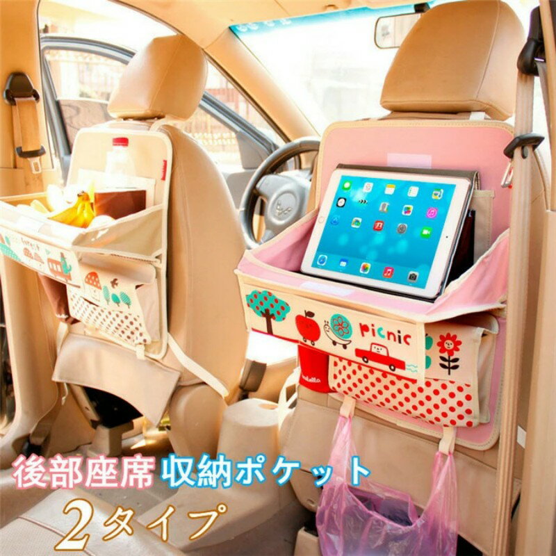 折りたたみ式ダイニングテーブル付き後部座席収納ボックス カーフードワークベンチ収納トレイバッグ ラップトップホルダー&ドリンクホルダー 多機能カーアクセサリー 後部座席用収納ポケット 大容量小物入れ 車載ポケット 可愛いデザイン