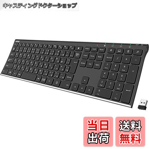 【送料無料】Arteck 2.4G ワイヤレスキーボード日本語配列 無線ステンレススチール 軽量 フルサイズキーボード テンキー付き コンピューター、デスクトップ、PC、ラップトップ、Surface、スマートテレビ、Windows10/8/7、Vista、XPとの交換性あり 充電式電池内蔵