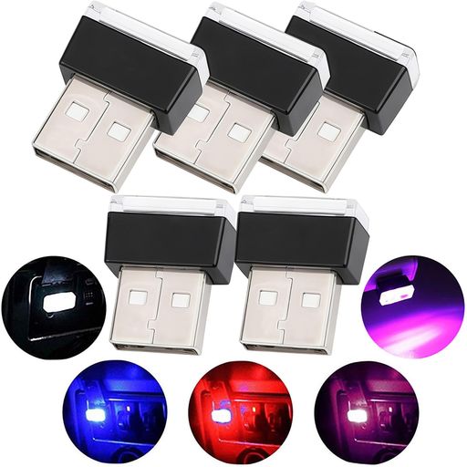 USB 雰囲気ライト、ミニUSBライト、 5個 車内USBナイトライト、 車内デコレーションライト、プラグイン5Vライト車、車、ラップトップ、U