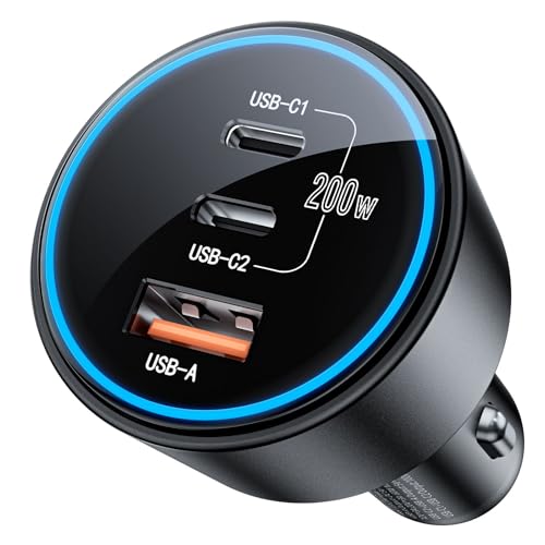 【送料無料】【200W 3ポート】ROADRESS 車 充電器シガーソケット usb-c 急速充電 PD3.0/QC4.0/PPS対応 カーチャージャー タイプc 車の 充電器 リングライト付き iPhone 16/iPhone 15/14/13/12, Galaxy S22/S21 Ultra, iPad, MacBook,ラップトップなどに対応