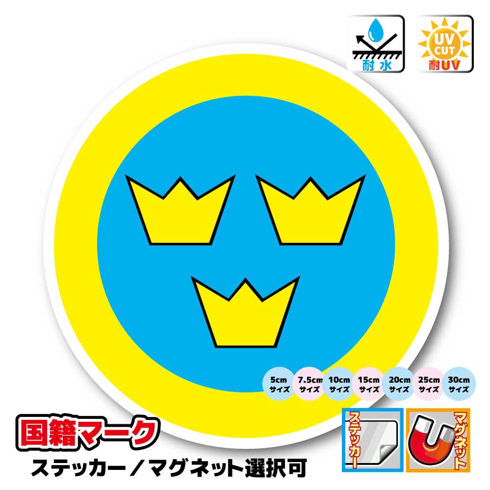 ■スウェーデン国籍マーク ラウンデルステッカー(シール)/マグネット選択可能 屋外耐候耐水 /スーツケースや車(ボルボ VOLVO)などに! 防水 磁石 通販 販売 楽天 海外旅行 ヨーロッパ スウェーデン軍 北欧 雑貨 バイク かっこいい