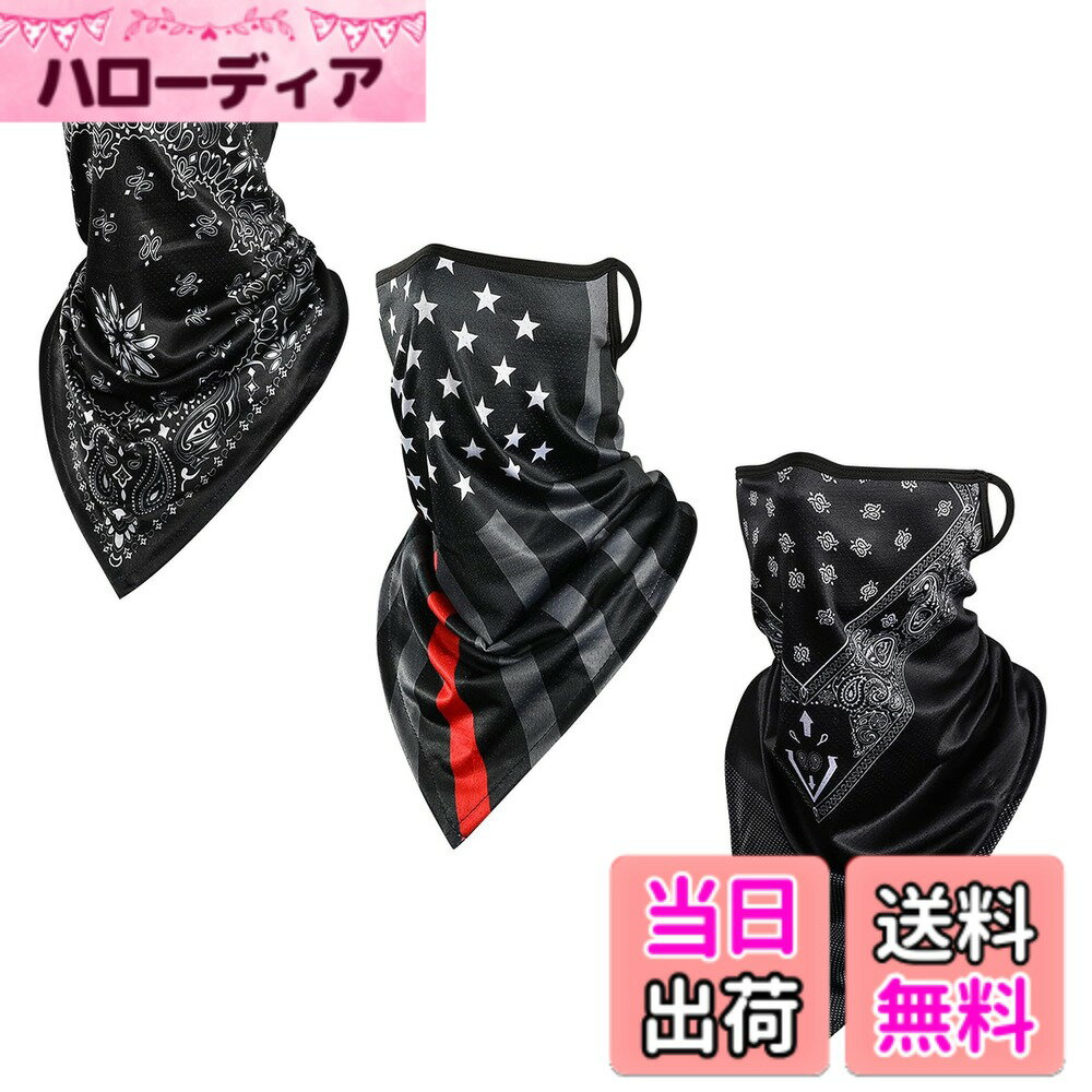 【送料無料】[YBRAVO] 冷感フェイスカバー ネックガード 耳かけ式 UVカット メンズ UPF50+ 日焼け対策 夏用 通気性に優れ 息苦しくない 呼吸しやすい 吸汗速乾 釣り スポーツ バイク ランニング ゴルフ サイクリング フリーサイズ 男女兼用 (3PCS) 色:ブラック
