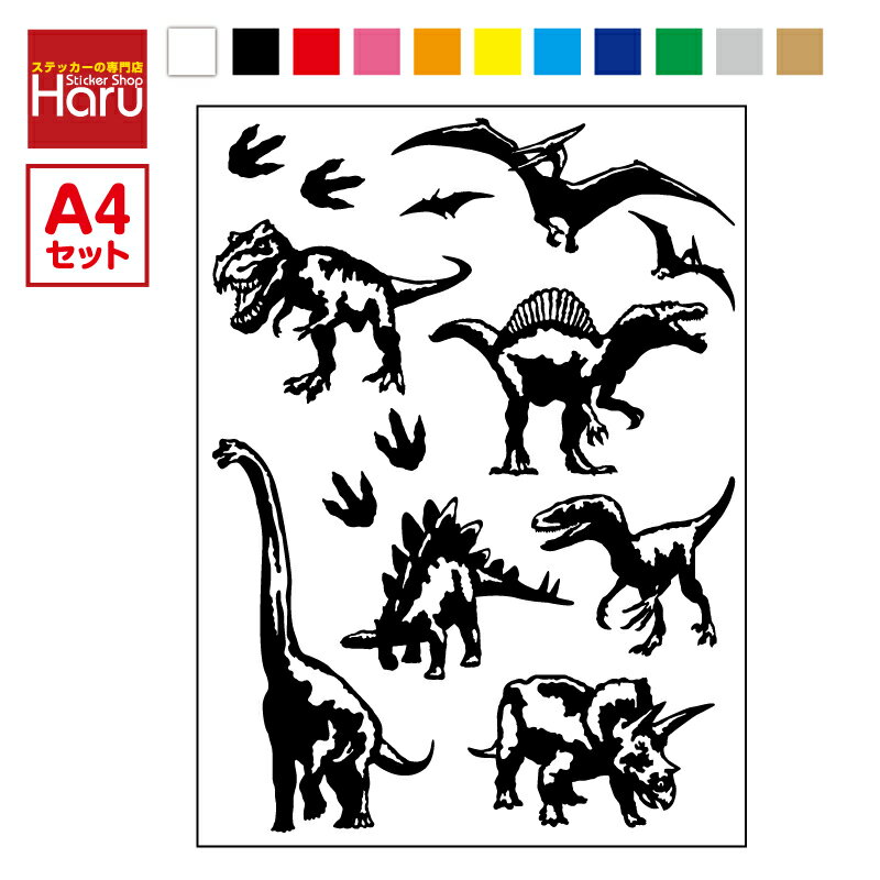 【商品説明】 人気の恐竜を12種類、細部までトレースしてカッティングステッカーにしました! ワンシートになっておりますので、貼るときには必要な分だけはさみなどで切ってご利用ください。 ・絵柄だけが残るカッティングステッカーです。 ・余白がない、スタイリッシュな仕上がり! ・ドレスアップ用ステッカーとしてぜひご利用ください! ・当店では、住友3Mカッティング用シートを使用。 ・屋外での長期耐光性、防水性に優れ,自動車のボディーや、 ガラス、露天のサイン等にも使用されています。 【使用上の注意】 ・このステッカーは貼りつけた後、 時間の経過とともに密着力が増してゆきます。 ・貼り付け直後は使用している糊の性質上、 密着が弱い場合があります。 そのような場合は指などで温めるように押し付け、 密着を安定させてください。 ・貼り付け対象物が汚れていたり、冷えていたり(5℃以下)すると貼りつかない場合があります ------------------------------------------------------- ※貼り付かない物に関しては下記説明をご参考ください。 ・ざらざらした面や凹凸のあるもの ・埃や汚れが付着しているもの ・油や、ワックス等の特殊コーティングが施された物 ・ポリエチレン、木、革、布製の素材 ・濡れているもの、冷えているもの ------------------------------------------------------- ・事前のクリーニングや適温下での貼り付けをおすすめ致します。 ・上質なシール材を使用しておりますので、 適切な貼り付けにより、しっかりとした粘着が得られます。 【材質耐性試験】 [耐熱]80℃168時間異常無し [耐水]23℃168時間異常無し ★当店商品ページの貼り方動画もぜひ参考にしてみてください! ▽当店おすすめ商品はコチラ!!▽【商品説明】 人気の恐竜を12種類、細部までトレースしてカッティングステッカーにしました! 全体のサイズでA4サイズ(20cm×29cm)くらい。 ワンシートになっておりますので、貼るときには必要な分だけはさみなどで切ってご利用ください。 【商品説明】 絵柄だけが転写されるカッティングステッカーです。余白がないのですっきりとスタイリッシュに仕上がります。車やバイク、ヘルメット、スノーボード、サーフボード、スケートボード、スーツケース、のドレスアップステッカーとして。また、傷隠し、リペアステッカーとしても便利にご利用ください。 〈材質耐性試験〉【耐熱】80℃168時間異常無し 【耐水】23℃168時間異常無し