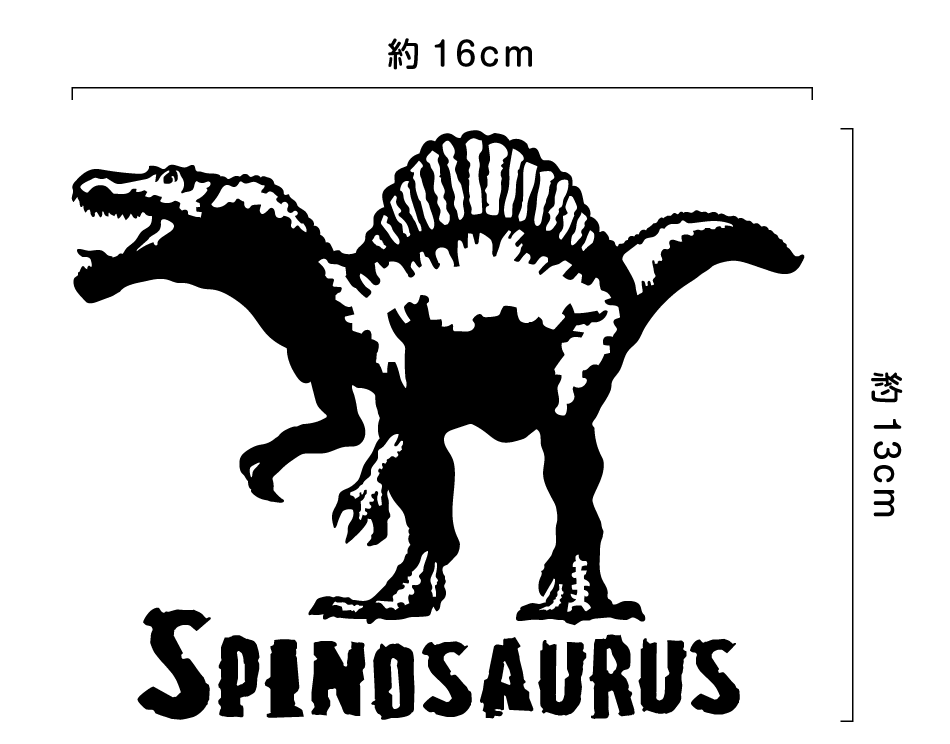 スピノサウルスのカッティングシートタイプのステッカーです。 【商品説明】 絵柄だけが転写されるカッティングステッカーです。余白がないのですっきりとスタイリッシュに仕上がります。車やバイク、ヘルメット、スノーボード、スーツケース、サイン等々、ドレスアップ用ステッカーとしてぜひご利用ください! 当店では、住友3Mカッティング用シートを使用。屋外での長期耐光性、防水性に優れ自動車のボディーや、ガラス、露天のサイン等にも使用されています。 このステッカーは貼りつけた後、時間の経過とともに密着力が増してゆきますが、貼り付け直後は使用している糊の性質上、密着が弱い場合があります。そのような場合は指などで温めるように押し付けて密着を安定させてください。また、貼り付け対象物が汚れていたり、冷えていたりすると貼りつかない場合があります(貼り付かない物に関しては下記説明をご参考にしてみてください)事前のクリーニングや適温下での貼り付けをおすすめ致します。 上質なシール材を使用しておりますので、適切な貼り付けにより、しっかりとした粘着が得られます。 当店商品ページの貼り方動画もぜひ参考にしてみてください! サイズ:16cm×13cmスピノサウルスのカッティングシルエットステッカーです。 スピノサウルスは今から約1億1200万〜9,700万年前の白亜紀に生息していた大型の肉食恐竜です。 体長はおよそ15〜17メートルほどでティラノサウルスをも超える巨体を持っていたことから最強の恐竜として知られて います。 恐竜ファンの中でも特に人気の高い恐竜で、ワニのように細長い顎と背中に大きな帆を持っているのが特徴です。 スピノサウルスは1915年にエジプトで古生物学者エルンスト・シュトローマーによって初めてその化石を発見しました。 その後、化石はドイツのミュンヘンにある博物館で保存されていましたが、第二次世界大戦の爆撃によって消失して しまいます。 そのためスピノサウルは近年になって再発見されるまで研究のほとんど進んでいない謎の恐竜とされてきました。 しかし、発見される化石はどれも断片的で最初にシュトローマーが発見した化石ほど状態が良いものは中々発見され ていません。 そのため、現在でもスピノサウルには多くの謎が残されています。