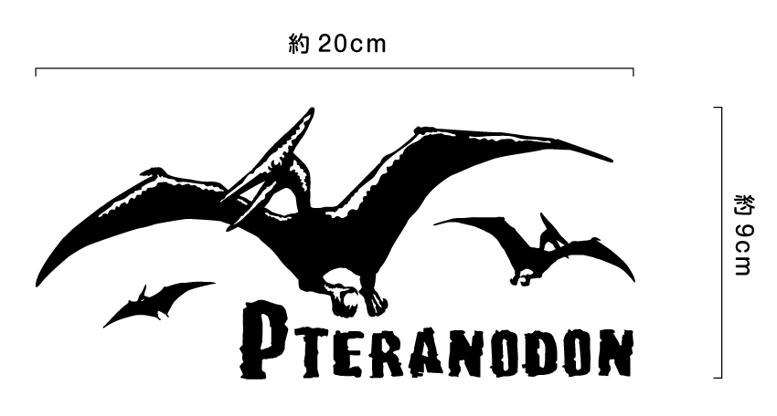 プテラノドンのカッティングシートタイプのステッカーです。 【商品説明】 絵柄だけが転写されるカッティングステッカーです。余白がないのですっきりとスタイリッシュに仕上がります。車やバイク、ヘルメット、スノーボード、スーツケース、サイン等々、ドレスアップ用ステッカーとしてぜひご利用ください! 当店では、住友3Mカッティング用シートを使用。屋外での長期耐光性、防水性に優れ自動車のボディーや、ガラス、露天のサイン等にも使用されています。 このステッカーは貼りつけた後、時間の経過とともに密着力が増してゆきますが、貼り付け直後は使用している糊の性質上、密着が弱い場合があります。そのような場合は指などで温めるように押し付けて密着を安定させてください。また、貼り付け対象物が汚れていたり、冷えていたりすると貼りつかない場合があります(貼り付かない物に関しては下記説明をご参考にしてみてください)事前のクリーニングや適温下での貼り付けをおすすめ致します。 上質なシール材を使用しておりますので、適切な貼り付けにより、しっかりとした粘着が得られます。 当店商品ページの貼り方動画もぜひ参考にしてみてください! サイズ:20cm×9cmプテラノドンのシルエットカッティングステッカーです! プテラノドンは今から8200万年〜7100万年前(白亜紀後期) に生息していた翼竜でその化石は北米や日本でも発見されています。 両翼を広げた長さは9メートルで翼竜の中では最大級で体重は25キログラム程度と推測されます。 プテラノドンは大きな頭部を持っており頭部の後ろにある長くて大きなトサカが特徴のひとつとなっています。嘴には歯のようなものは無く、魚などをを丸呑みに捕食していたと考えられます。 そのため、名前の「プテラノドン」とは「歯のない翼」を意味し、歯がない翼竜であるという分かりやすい理由から名付けられました。