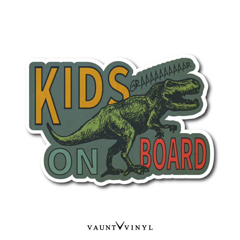 恐竜 Kids on board ステッカーシール 車 アメコミ風 ダイナソー ティラノサウルス Tレックス T-REX 怪獣 かわいい かっこいい ベイビー ベビー キッズ チャイルド インカー in car 赤ちゃん 煽り 煽り運転対策 子供