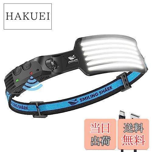 【送料無料】Smiling Shark 充電式 LED ヘッドライト, 【革新款・PSE??・白光1個セット】 USB充電可能 3 倍高輝度アウトドアヘッドランプ 230°広角照明 集光 超軽量 IPX4 防水防塵 8時間連続使用可能 キャンプ 登山 散歩 釣り 作業 停電用 防災用 最適