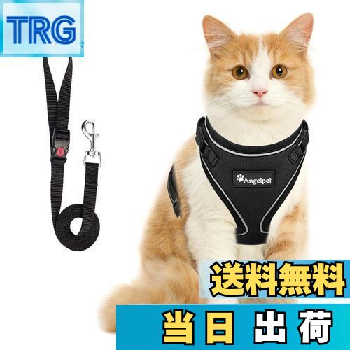 【送料無料】猫 猫用 ハーネス 胴輪 猫具 ねこ ネコ 子猫 子犬 小型犬 散歩 お出かけ 抜けない ベスト ソフト胸あて 軽量 頭を通さずマジックテープで装着 サイズ調節可 夜反射 通気メッシュ (Sサイズ (x 1), ブラック)