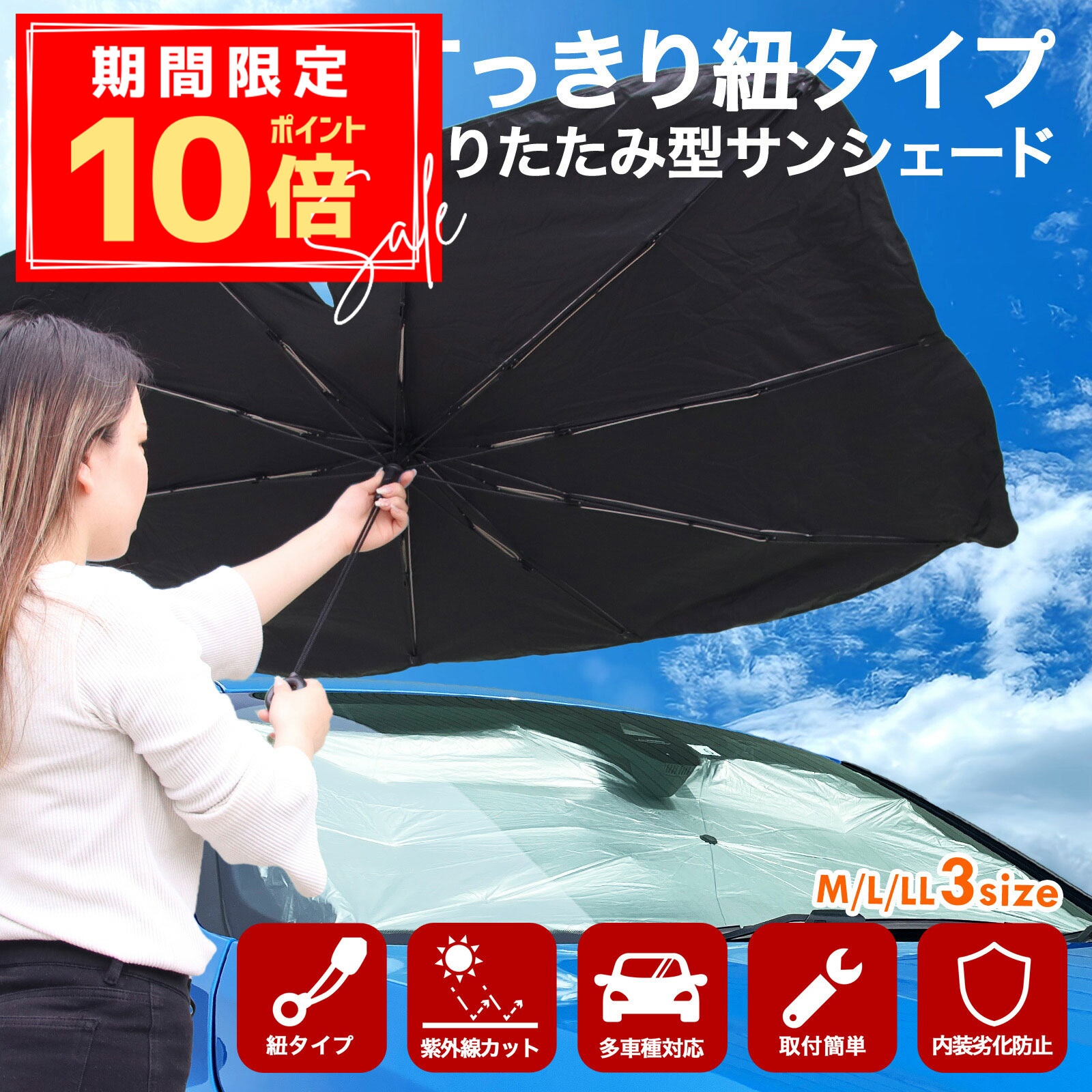 \P10倍+10%OFFクーポン/カーナビに干渉しない 紐タイプ 傘型サンシェード 車 フロント 傘型 新型 傘式 10本骨 サンシェード M L LL サイズ 大きいサイズ 熱中症対策 紫外線対策 UVカット 遮光 遮熱 断熱 紫外線カット 折りたたみ コンパクト収納 日除け 日よけ 暑さ対策