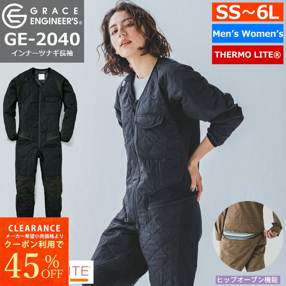 【冬物クリアランスSALE|クーポン利用で6384円】バイク ウェア ツナギ つなぎ つなぎ服 冬 アメリカン おしゃれ メンズ レディース 男性用 女性用 インナーツナギ 長袖 GRACE ENGINEER'S ブラック 9サイズ 上下 防寒 防風 酪農 キャンプ オートバイ 釣り フィッシング