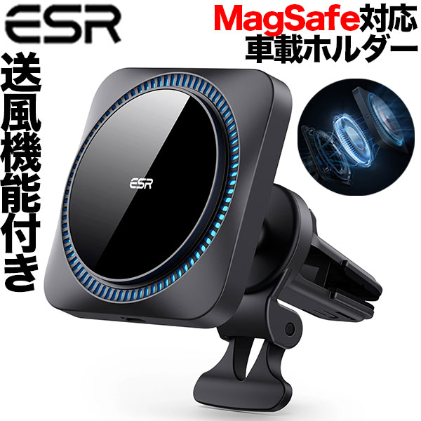 ESR 車載ホルダー 放熱 送風 車載 充電器 マグネット ワイヤレス 充電 ホルダー HaloLock iPhone 12 13 Pro Max スマホスタンド