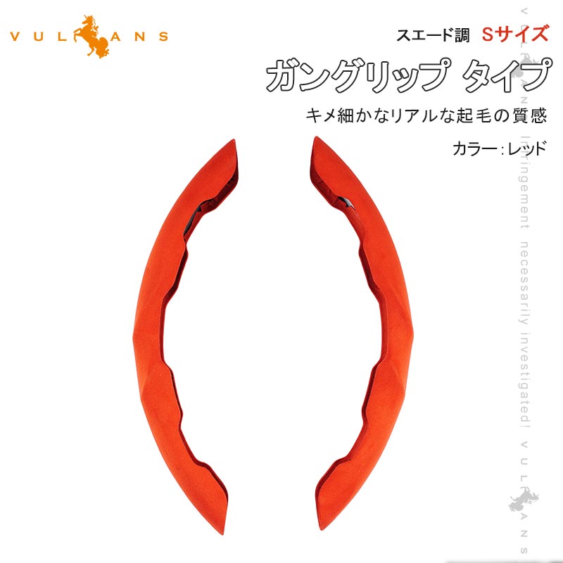 【Vulcans】【即納】ステアリングカバー Sサイズ レッド 2PCS 軽自動車用 ハンドルカバー ガングリップ タイプ 内装 パーツ カスタム アクセサリー