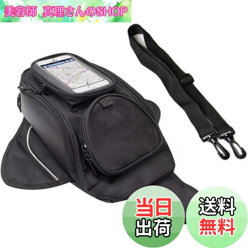 【送料無料】Ansimple バイク用 タンクバッグ ツーリングタンクバッグ マグネット式 追加マグネット付き 2WAY ショルダーバッグ 大容量 ブラック 脱落防止ベルト付き 追加マグネット付き