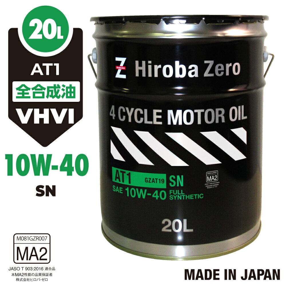バイク用 4サイクルエンジンオイル 20L 化学合成油/全合成油 [10W-40/SN/MA2] VHVI バイク用エンジンオイル AT1 ヒロバ・ゼロ