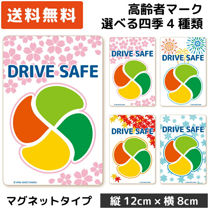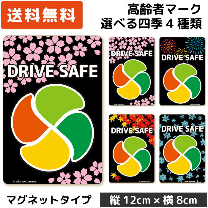 高齢者マーク マグネット 四季デザイン ホワイト 白 春夏秋冬4枚組 さくら・花火・紅葉・雪結晶 各1枚 もみじマーク 高齢者ステッカー 高齢運転者標識 シルバーマーク シニア 磁石 紅葉 安全運転 桜 日本製 おしゃれ かっこいい