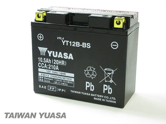 台湾ユアサ YUASA 液別 AGM バッテリー 互換バッテリー GT12B-4 FT12B-4 VT12B-4 他 ※プロ好みの電解液付属タイプとなります。 ■商品概要 状態 新品バッテリー 付属品 本体・ビス・保証書 保証 1ヶ年保証 ※詳しくは下記参照 ◆バッテリー要項表(サイズ・重量は目安となります) 形式 容量 長さ 幅 高さ YT12B-BS AGM 10.5Ah 150mm 69mm 130mm ◆この商品は18歳未満のお客様には販売出来ません。液入りタイプをご利用ください タイトルのに記載の車両でも年式により異なるバッテリーが搭載されている場合もございます。 バッテリーの選定時は車両搭載バッテリーの型番・各寸法をご参考にお願いいたします。 また、輸入商品のため使用に支障のない傷、汚れ、ビスの不具合がある場合がございます。予めご了承お願 い致します ■新品バッテリー交換について ※ショートさせると大変危険です。十分なご注意の上交換作業をして下さい。 ・取り外し順:マイナス端子→プラス端子 ・取り付け順:プラス端子→マイナス端子 ※コネクタータイプのバッテリーはそのまま交換して下さい ◆廃バッテリーは処分無料です。エコ活動にご協力ください! お客様送料ご負担にてご不要の廃バッテリーを弊社まで送ってください。 弊社にて回収業者経由→リサイクル工場にて新品として生まれ変わります。ぜひご協力ください。 ◆WAVEパーツ館の安心保証 ■保証内容 商品到着後、1ヶ年以内にバッテリー本体に原因がある故障の場合、1度限りにて交換対応致します。 ※保証を受ける際、付属の保証書の添付が必須となります。大切に保管お願い致します。 ■保証時の送料とご連絡方法 初期不良:到着より7日以内は弊社にて送料負担致します。 通常不良:到着より8日以降はお客様送料ご負担にてお願い致します。 ※通常不良期間の交換バッテリーの先送りは行っておりません。予めご了承お願いいたします。 ■保証できない事例 ※バッテリー詳細についてのQ&Aはこちらでご確認下さい。 故障の原因が車両側によるもの(オルタネータ、レギュレター不良) 故障の原因が天災及び事故によるもの 取扱方法の間違えによる本体の破損によるもの 脱着にかかる工賃・車両の修理代等 充電の後、正常に動作するものはご対応出来ません。[お願い] お客様が安心してお買い物をして頂くために商品説明を十分ご理解の上ご購入お願い致します スマートフォン、モバイルユーザーの方は表示されない部分が有るためフルブラウザ(PCサイト)にて内容確認お願い致します。 ■バッテリーの適合は現車にてご確認下さい。※サイトでの適合確認は GSユアサさまホームページでご確認頂けます。 ※車両の「年式・仕様」で搭載バッテリーが異なる場合がございます。