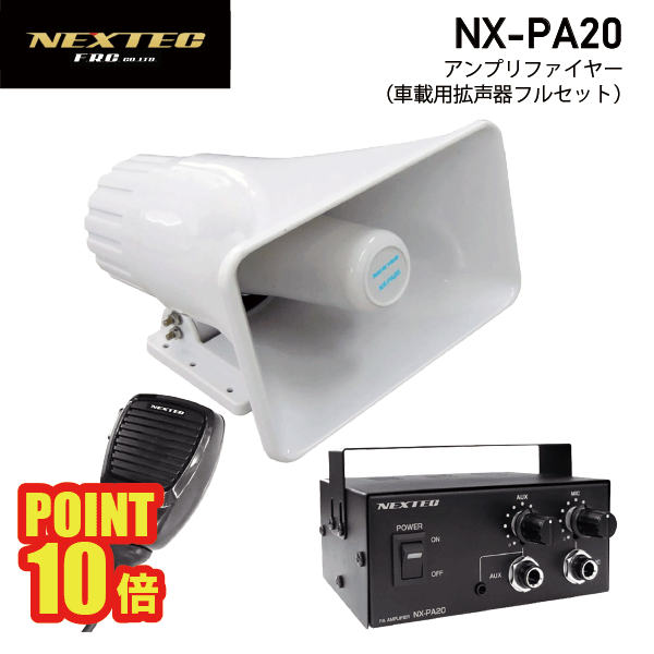 【送料無料】車載用拡声器 NX-PA20 PAアンプリファイヤー アンプ/スピーカー/マイクのセット/選挙/移動販売/広報などに/日本製/外部入力端子【レビュー特典あり】
