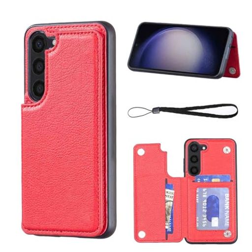 【OULO1】GalaxyS23Plus5G/S23+/docomo/au用ケースレザー人気カード収納スマホケース耐衝撃軽量スタンド機能薄い背面ICカード入れ手帳型財布型カバー(レッド)ギャラクシーエス23プラス