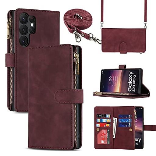 【優れた素材】ケース対応機種はGalaxyS23UltraSC-52D/SCG206.8インチ。外カバーは、指紋や傷を防ぎ、落下の衝撃を軽減できる、スタイリッシュで美しい高品質の皮革素材で作られています、それは、実際のケースのユニークなフィット感と柔らかい感触と。インナーケース軽薄で柔軟性TPU素材。シリカゲルシェルは機体の美しさをより引き立てます。 【長ストラップ付き】携帯ケースに長さを調節できるロングストラップが付属しており、取り付け方によって首または肩に掛けて使用できます、両手が自由に動く。両端の金具は回転するパーツを使用しているので、絡みにくく快適に使えます。携帯が落ちる心配はありません。 【チャック付き多機能財布型ケース】内側に9つカードポケット、カード、車券と名刺なは便利にカードスロットに挿入することができます、にお札、小銭などはサイドポケットに挿入できます。ヘッドセット、鍵、コイン、小銭などはファスナー付きのポケットに入れることができます。財布型ケースとして、名刺やお札などを入れるカードポケットがつき、外出活動や日常生活に便利。