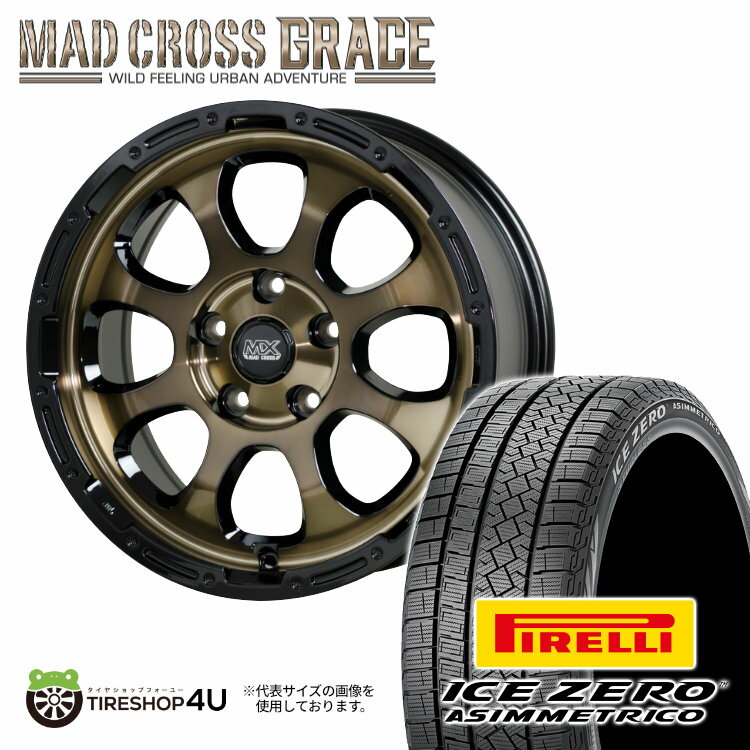 スタッドレスタイヤ ホイール 4本セット 17インチ 新品 2025年製 ピレリ アイス ゼロ アシンメトリコ 225/65R17 106H MAD CROSS GRACE 17X7.0J 5/114.3 +38 7J ブロンズクリア BRC/BK PIRELLI ICE ZERO ASIMMETRICO マッドクロス グレイス ハリアー RAV4 など