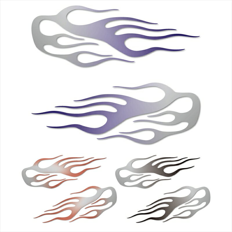 (シルバー)ファイヤーパターン ステッカー ファイヤー 2枚セット やんちゃ系 汎用 フレア バイクカスタム 塗装 デカール 炎 ヤンキー デコ アクセサリー バイク ワンポイント