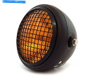 6.5 インチ H4 ハロゲン オートバイ ヘッドライト グリル付き - マットブラック グロスブラックアンバー 6.5" H4 Halogen Motorcycle Headlight w/ Grill - Matte Black Gloss Black Amber