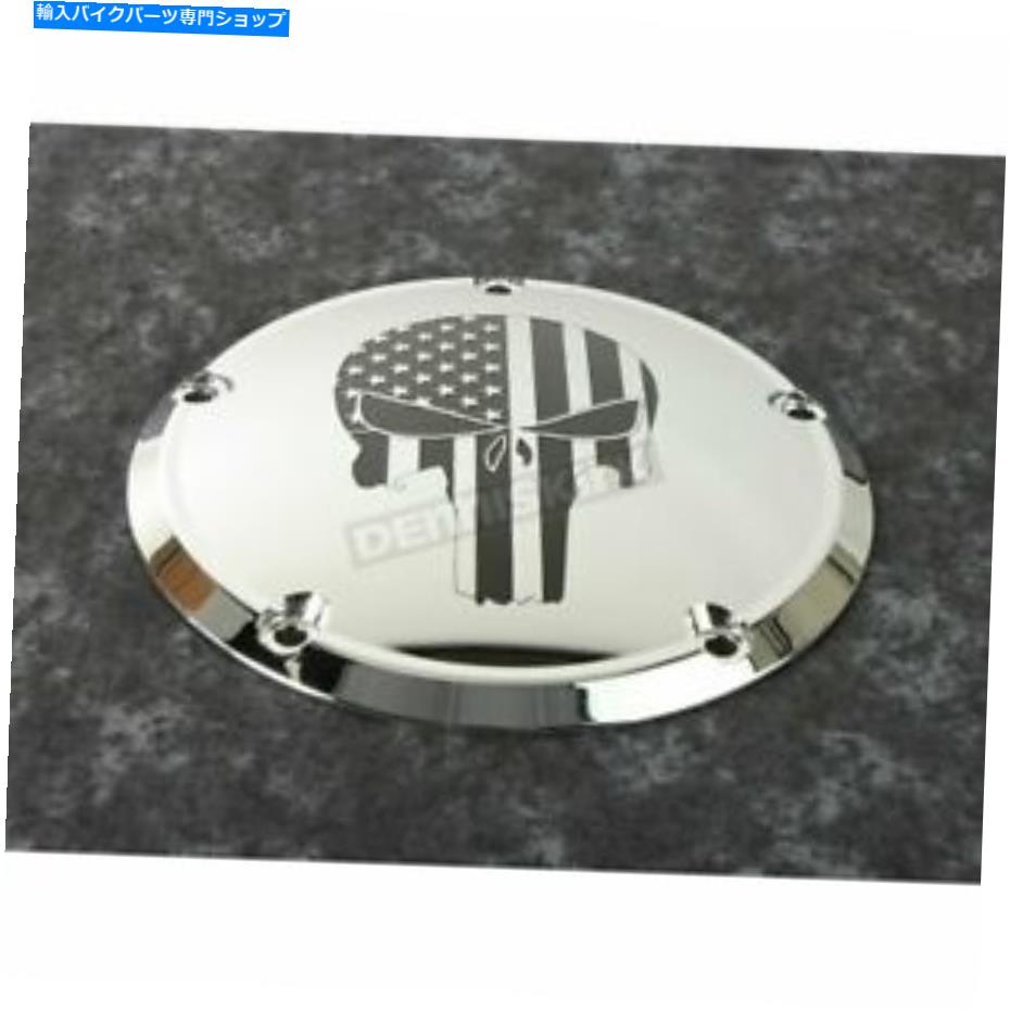 クロームパーツ カスタム彫刻クロームブラックスターズとストライプパニッシュパニッシュダービーカバー - PATR22-12 Custom Engraving Chrome Black Stars and Stripes Punisher Derby Cover - PATR22-12