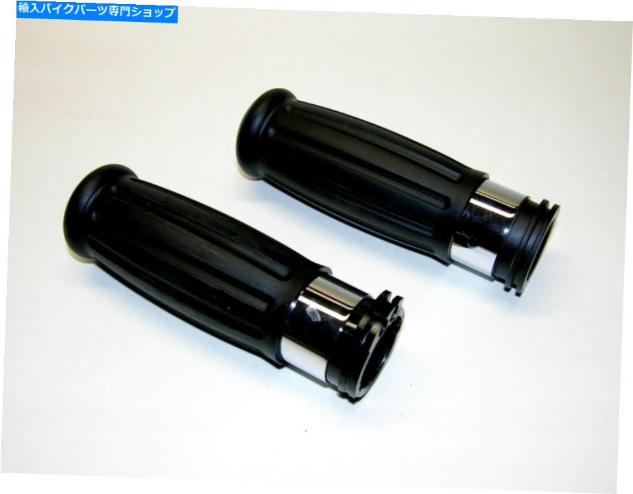 クロームパーツ 黒「コークスボトル」とクロームリングとグリップ1996-2007 HD、Bobber、Vintage Black “Coke Bottle” Grips with Chrome Ring for 1996-2007 HD, Bobber, Vintage
