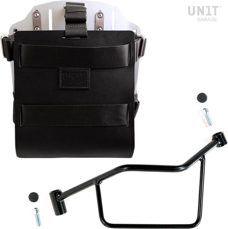 UNIT GARAGE ユニットガレージ Unit Garage Carrying system in aluminum with adjustable leather front, Quick Release System and frame (2020 until now), Black/Silver | U085+U000+3003SX-Black-Silver バッグ・ボックス取り付けステー 車体用バッグ・ケース