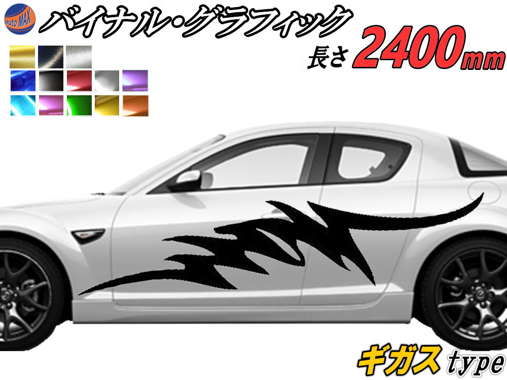 サイドデカール (ギガス) 【商品一覧】 汎用 左右2枚1セット 幅500mm×長さ2400mm (2.4m) 転写シート付属 バイナル グラフィック デコライン ステッカー トライバル チタニウム ブラッシュド アルミ調 クローム メタリック ストライプ 自動車 オリジナル