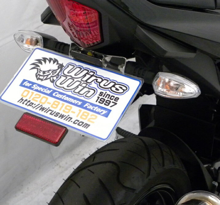 【適合車種】GSX250R【適合型式】車体型式:2BK-DN11A、エンジン型式:J517zero865224ノーマルフェンダーを外して取り付けます。後加工の必要もなく簡単に装着することが出来ます。純正のナンバー灯、リフレクター(反射板)、ウインカーも取り付けられるようになっています。フェンダーレス化することにより、タイヤが露出されレーシーな感じに仕上がります。SUS304ステンレス製でバフ仕上げの為、高級感バツグンです。かなり目立ち、ドレスアップとしては最高です!ウイルズウィン社フェンダーレスキットは、長い純正フェンダー(泥よけ)を取り外すことにより、すっきりとしたリア周りに仕上げることを目的とした商品です。またリア周りのメンテナンスやレース等の使用における空気抵抗を抑える理由から、ウイルズウィン社製品はナンバープレートホルダーの角度を変更することができる設計になっています。しかし、道路交通法の保安基準ではリフレクター(反射板)の装着義務やナンバープレートの角度を約45度以内(後方からナンバープレートを目視で確認できる角度)とすることが定められております。ウイルズウィン社製品は仕様としてナンバープレートホルダーの角度調節することは可能ですが、一般公道等の道路交通法を遵守しなければならない道路では保安基準を超えた角度(正確に目視できない角度)での製品の使用は法律で禁じられておりますので絶対におやめください。【商品名】フェンダーレスキット【商品番号】W4-170929-011【メーカー】ウイルズウィン(WirusWin)【車種メーカー】SUZUKI(スズキ)【適合車種】GSX250R【適合型式】車体型式:2BK-DN11A、エンジン型式:J517