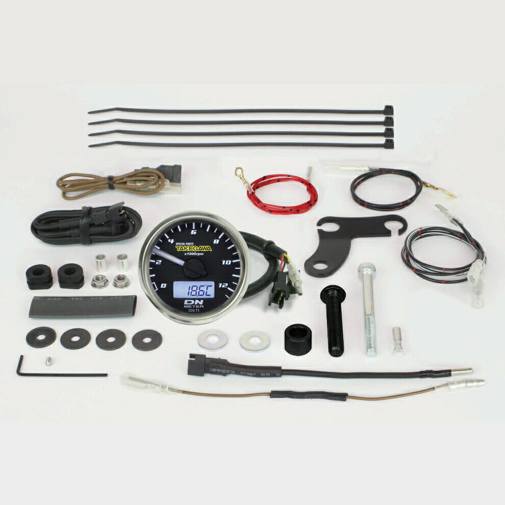●メーカー名:SP武川 / SP TAKEGAWA(スペシャルパーツタケガワ)●商品名:Φ48スモールDNタコメーターキット(オレンジLED)●メーカー品番:・05-05-0108●JANコード:4514162803400商品の保証は、メーカー保証書の内容に準じます。●特徴【Φ48スモールDNタコメーター DN=デジタルニードル】指針角度をデジタル信号&小型モーターで完全制御している為、指針保持力が高く、信頼性に優れています。メーター本体は回転数機能に加え、温度計、時計、エンジンワークタイマー、自動測定機能(最高温度記録/最高回転数記録)を兼備えています。ブラックパネルにオレンジLED照明は夜間の認識性も抜群です。ステンレスボディーを採用。ラバーマウントタイプステー付属【Φ48スモールDNタコメーター詳細】■指針式電気式タコメーター:〜16000rpm表示■モニターには多様な機能を装備(デジタル表示)サーモメーター(120℃まで測定可能)スティック温度センサーが付属している為、別売弊社製ドレンボルトをご購入頂く事で、ドレンボルト部での温度を計測出来ます。温度センサーをカウル内に収めると外気温度を計測出来ます。■自動測定機能最高温度記録 / 最高回転数記録をメーター装着時自動で行います。走行後、メーター表示の切替えにより、記録を確認することが出来、リセットを行うまで記録が保存されます。■エンジンワークタイマー500rpm以上のエンジン稼動時間を自動で加算するタイマー。500rpm未満になると止まります。最大時間:9999時間(100時間までは分単位で記録され、100時間を超えると1時間単位で記録されます。リセット可能。非表示設定有り■時計24時間表示 非表示設定有り●備考本製品は純正スピードメーターの横に配置出来るメーターステー、車両専用サブハーネスが付属している為、純正部品の加工や配線加工の必要が無く、スモールDNタコメーター(オレンジLED)をダックス125(JB04)に取付け出来ます。配線はカプラーオンで接続出来ます。メーターステーはスチール製ブラック塗装仕上げ※ノーマルメーターロアカバーを一部加工する必要があります。●ご注意※SP武川社外品のH.I.D.キット、他社製LEDヘッドライトやフォグランプ類は、絶対に同時装着しないで下さい。※バラスト/インバーター(電圧変換装置)からデジタル回路の悪影響を与える高電圧ノイズが出る物があり、製品故障や動作不良の原因となります。●写真注意※写真はイメージです。メーカー車種年式型式・フレームNo.その他ホンダダックス125JB04-1000001〜※商品掲載時の適合情報です。年式が新しい車両については、必ずメーカーサイトにて適合をご確認ください。