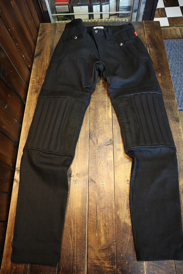 ■ 在庫に関してのお願い ■ 掲載商品は、当店在庫(商品)とメーカー在庫(お取り寄せ商品)がございます。 上記在庫表は、約1週間ごとに更新しております。ご注文後でも売り切れの場合がございます。 その場合、メールでお知らせしますが、予めご了承の程お願いいたします。DEGNER カップ付きデニムパンツ メンズ DENIM PANTS WITH CUP PROTECTION MENS DP-27 ブラック DEGNER カップ付きデニムパンツ メンズ DENIM PANTS WITH CUP PROTECTION MENS DP-27 ブラック ■商品詳細 あなたのライディングをより快適に。 ・ヒザ上のシャーリングで脚を曲げたときも突っ張らない。 太もも内側にある牛革のヒートガードでエンジンからの熱伝導を軽減。 ・腰にもシャーリングを採用し前傾姿勢でも負荷が少ない。 ・ヒザにはプロテクターが標準装備。外側から出し入れ可能で着脱がラクラク。 ・裾の内側にも牛革のヒートガードをつけることで、バイクからの熱による火傷を防止。 太ももとふくらはぎの内側に牛革のヒートガードを取り付けし、エンジンやマフラーの熱から足を守ります。 また、ヒザ上や腰にシャーリングがあり、ライディングポジション時の負荷を軽減。 ヒザにはプロテクターが装備されて安全性を考慮。手洗い可能。 【素材】 コットン/牛革 【カラー】 ブラック ネイビー 【サイズ】 S/M/L/XL ■取付け、ご使用時の注意点■ ▼経年変化やご使用による製品の劣化・損耗は避けられません。 ▼耐久性には十分考慮しておりますが、過度な負担をかけたり 使用方法が適切でない場合破損する恐れがございます。 ▼同じ製品であってもそのシワやヒビの入り方にはそれぞれ個体差が あり、またその革固有のキズ・色合いの濃淡など一着一着に個性がございます。 ▼製作時期によっても革の風合いに若干の差異が生じることが 御座いますので予めご了承くださいませ。 |ウェア | オーバーパンツ・ウイインターパンツ | 売場案内 | ▼もっと見る▼ ■ ブランドリストから探す ■ アイテムカテゴリから探す