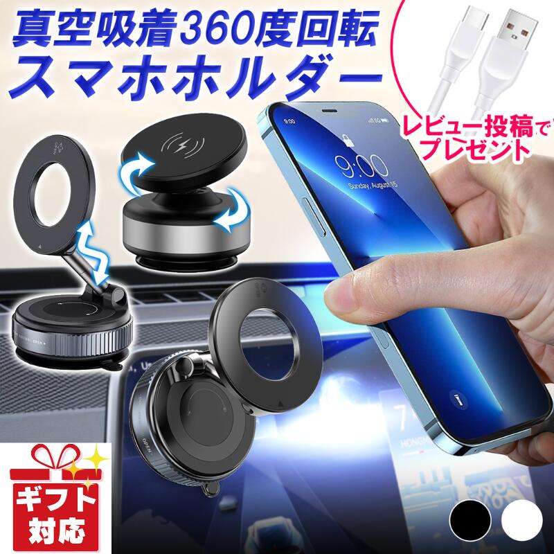 ★ブラックフライデー中最大P11倍★スマホホルダー 車 マグネット スマホスタンド 車載 携帯ホルダー 真空式吸着 マグネット吸着 吸盤 磁石 2WAY 強力固定 マグセーフ対応 折り畳み式 回転式 電動回転式【レビュー特典あり】