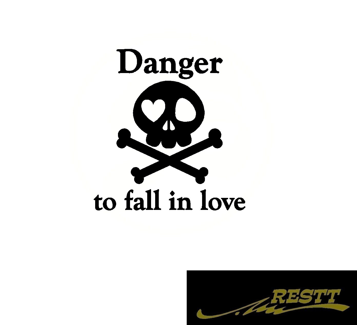 ドクロ Danger to fall in love 危険 恋に落ちる ロゴ カッティングステッカー 中サイズ 文字 おしゃれ 面白い 営業車 トラック バン 髑髏 どくろ スカル 危険 恋 落ちる